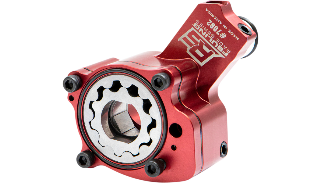 NOTA: Usar na isntalação desta bomba, a placa de suporte do eixo do comando de Alto Fluxo Feuling (código F8017), para obter ganhos de potência na roda traseira de 3 HP e 5.4 Nm de torque.