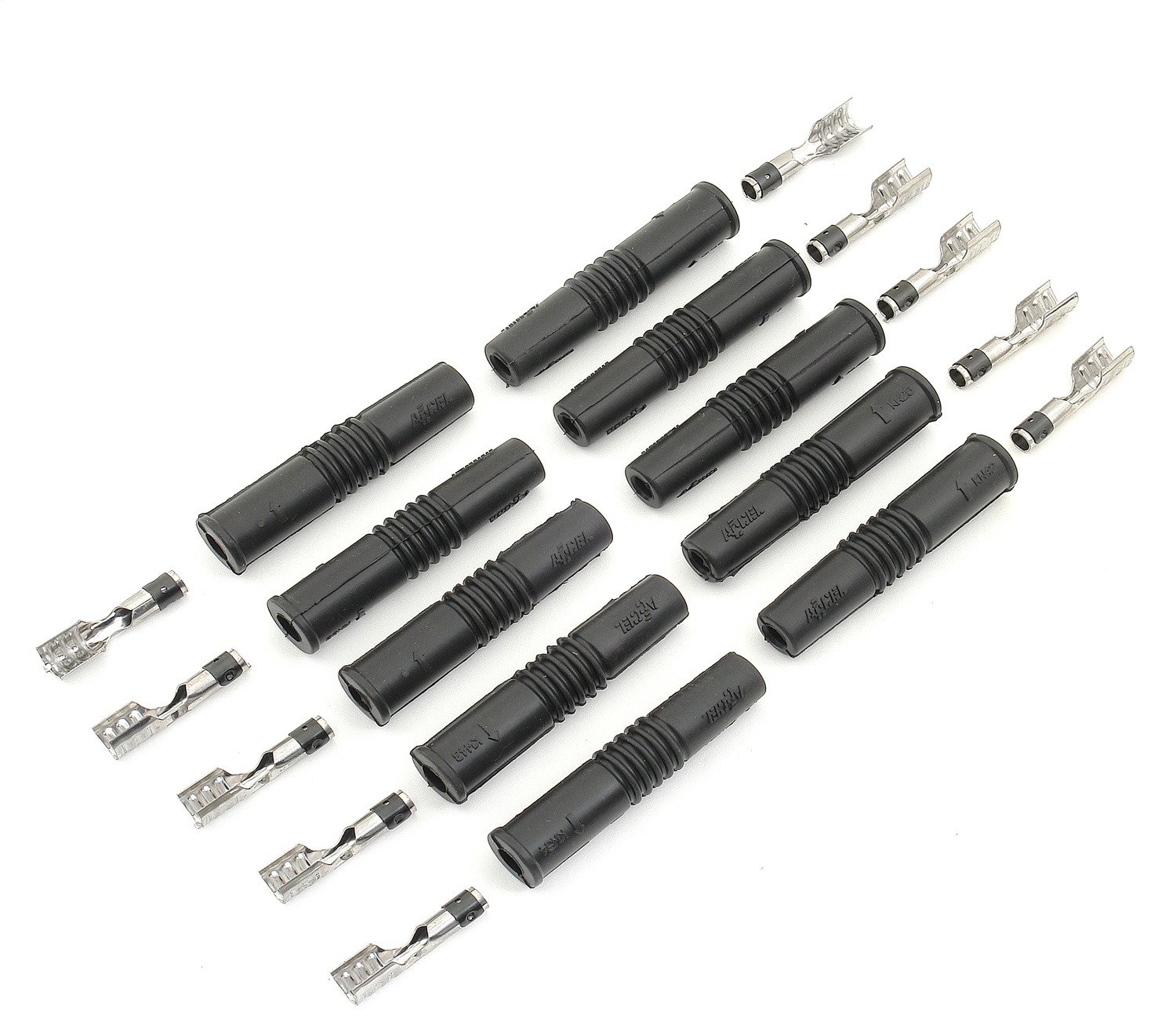 Os kits de cabos de vela ACCEL para motocicletas incluem cabos de 8,8 mm e 9 mm com terminais pretos de ângulo variável, ideais para uma infinidade de aplicações. Utilizados com os cabos ACCEL em bobina para criar conjuntos personalizados, os terminais são fabricados em silicone de alta qualidade, oferecendo proteção contra vazamento dielétrico, sujeira, umidade e produtos petroquímicos. Os terminais de aço inoxidável vêm com presilhas de encaixe de travamento positivo para máxima condutividade e durabilidade.
